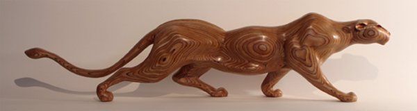 Jamie now also produces one off sculptures carved out of plywood. A very striking effect is achieved by first laminating a number of sheets of ply together and then cutting through them to reveal the different layers. The final stage consists of progressively sanding with different grades of sand paper to produce a very smooth finish with a layer of wax to finish the piece.